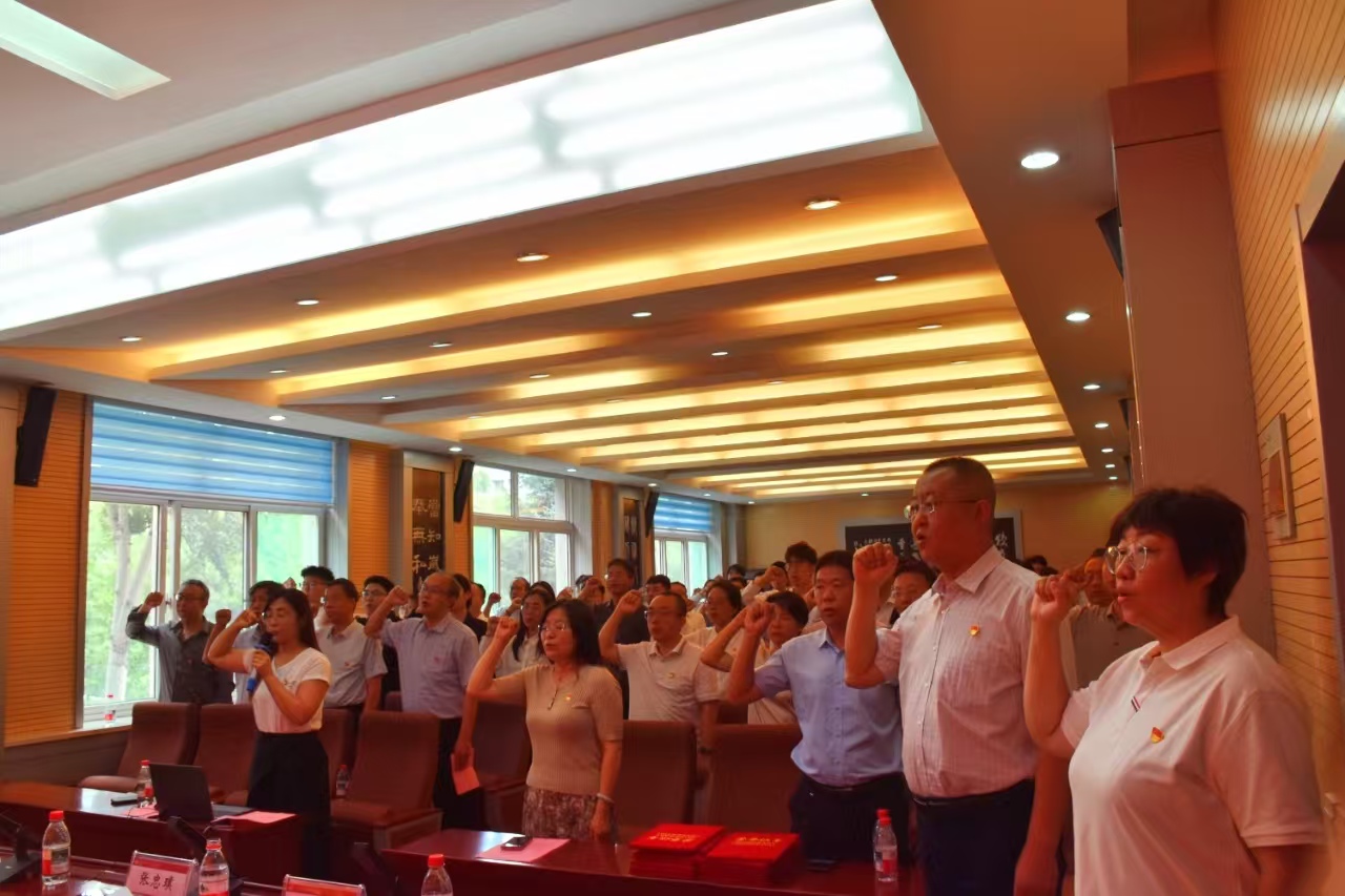 全体党员同志重温入党誓词,铮铮誓言饱含着每一名党员对党的忠诚和为共产主义事业奋斗终身的决心。