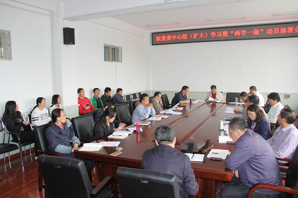 薛武杰书记首先传达了公司党委近期中心组学习会议精神和公司党委“两学一做”推进会相关要求。在此基础上结合学院实际和实施办法,对学院“两学一做”进行了动员部署。指出,“两学一做”教育,以面向全体党员深化党内教育、推动全面从严治党向基层延伸、保持发展党的先进性和纯洁性为根本要求,坚持区分层次、突出问题导向,进一步解决公司党员队伍在思想、组织、作风、纪律等方面存在的问题,为推进学院建设提供健全的政治、思想和组织保障。要求党员干部和全体党员,特别是党支部书记一定要把思想政治建设放在首位;坚持突出“学作风”的鲜明特色,坚持以上率下的基本方法,坚持解决问题的根本导向,坚持强化堡垒阵地意识,把“两学一做”落到实处。