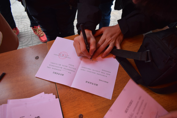 为深入学习贯彻落实党的十九大精神,践行社会主义核心价值观。严肃考纪,端正考风,营造踏实学习,诚信考试的校园学习环境,304永利集团团委、自律委于2017年12月29日在虎裕校区举办“促学风·正考风”诚实考试证书签名活动。活动现场,同学们热情高涨,都自发的前来签署诚实考试证书。直至本次活动结束,共有400名同学签署了诚实考试证书。为学院严谨的考场纪律撑起一道“诚信、文明、自觉、向上”道德之墙。