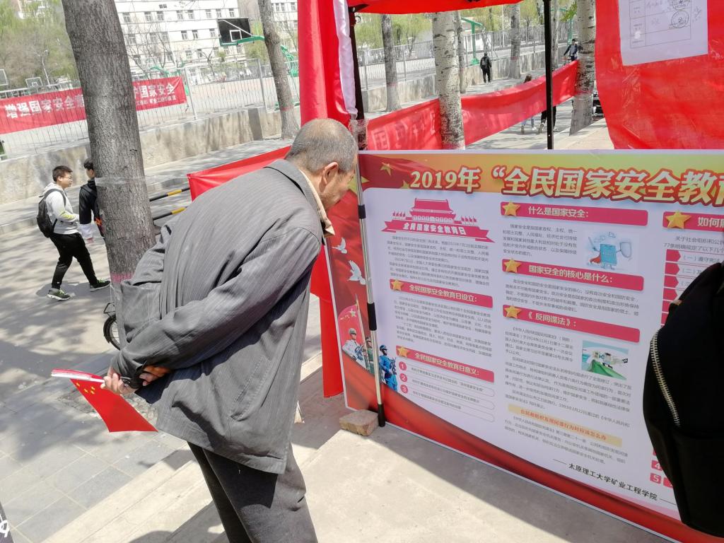 4月15日,在我国第4个全民国家安全教育日来临之际,矿院工程学院在虎峪校区举行了“增强国家安全意识 共同维护国家安全”主题宣传教育活动。