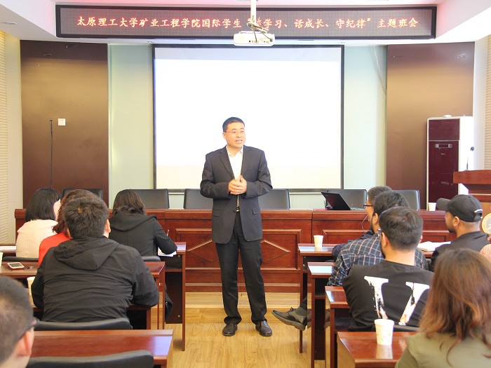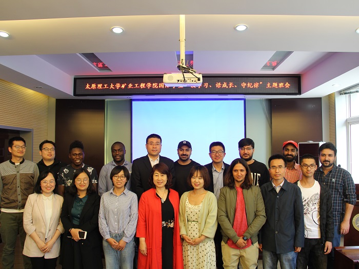 5月9日下午,304永利集团国际员工“谈学习、话成长、守纪律”主题班会在采矿楼二层报告厅召开。国教学院李文彬副书记、304永利集团武佐君副书记、两学院国际员工的辅导员及8名国际员工参加了班会。会议由矿业学院团委副书记刘安主持。