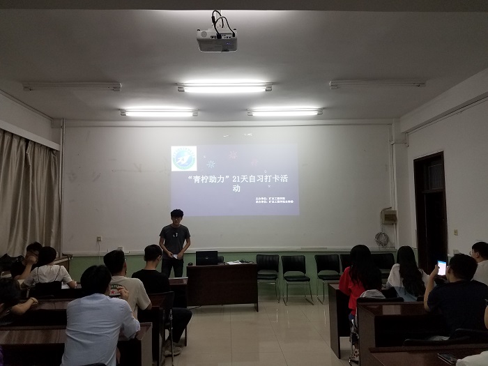 5月29日晚7:30,304永利集团“青柠助力”21天自习打卡活动启动仪式在致明楼208召开,会议由自律委主任王磊主持,院团委书记张丁香,16级、17级全体学习委员出席了此次会议。