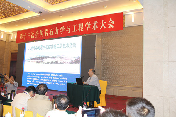 22日上午9:10开始大会特邀报告和大会报告,会场报告时间累计11小时,有6位院士和17位专家进行大会交流。9月23日全天大会专题报告,分别设岩石力学实验研究、理论与数值模拟、岩石工程与施工技术、岩石工程现场测试与监控4个分会场,早8:00到下午6:30,会场报告累计28小时,共有80位学者会议交流,并就相关热点研究问题展开讨论。