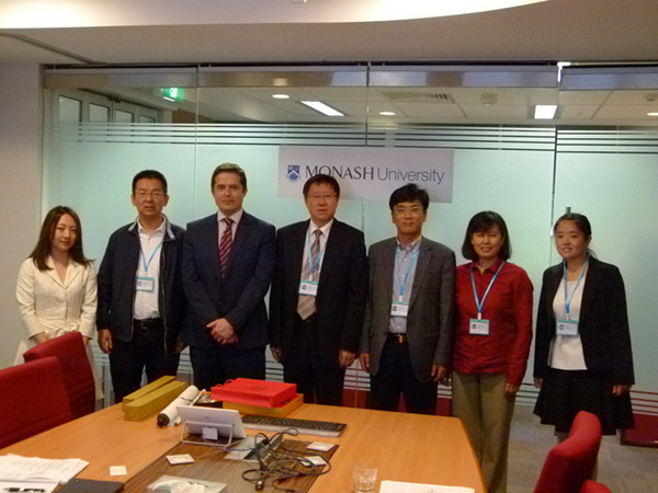 澳大利亚莫纳什大学建于1958年,是世界百强名校、澳洲八大名校之一,设有商业与经济学、工程学、信息技术、医学、艺术设计、人文等多学科。其在校员工达63000余人,其中国际员工占30%以上。10日上午,代表团一行首先与国际事务副董事长办公室主任Michael Simmonds进行了交谈;之后经理梁卫国教授与采矿与资源工程系主任Jerry Tien教授及其团队进行了座谈,就采矿工程与安全工程专业员工联合培养,青年教师交流访问进行了商榷交流。