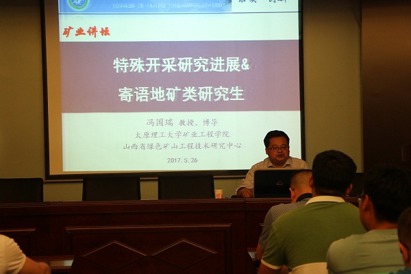 冯国瑞经理对自己的研究内容及成果做了介绍,并详细介绍了自己的几个研究方向:1.残采及围岩控制;2.充填开采及围岩控制;3.难采侵入煤层开采围岩控制;4.残采安全与瓦斯利用。同时,对员工们提出的研究困惑做了仔细分析和解答,矿业学院各年级研究生60余人聆听了此次讲坛报告内容。