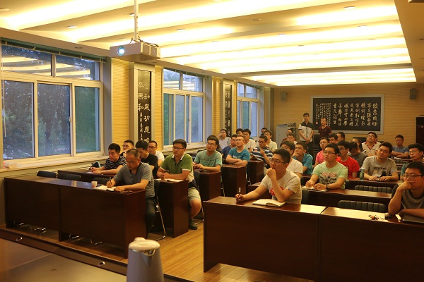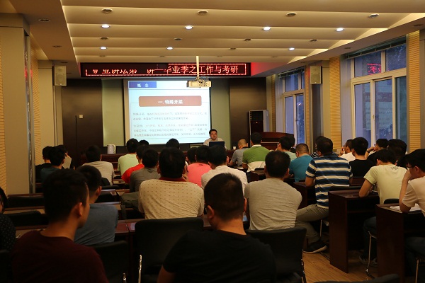 冯经理对广大研究生给与了热情的鼓励,并用一副对联;“主动积极,保障投入,科研领域内勤学术交流,井外观天“顶天”选题;严肃认真,专注精心,实验基础上,善创新分析,脚踏实地“立地”科研,”结束了报告。