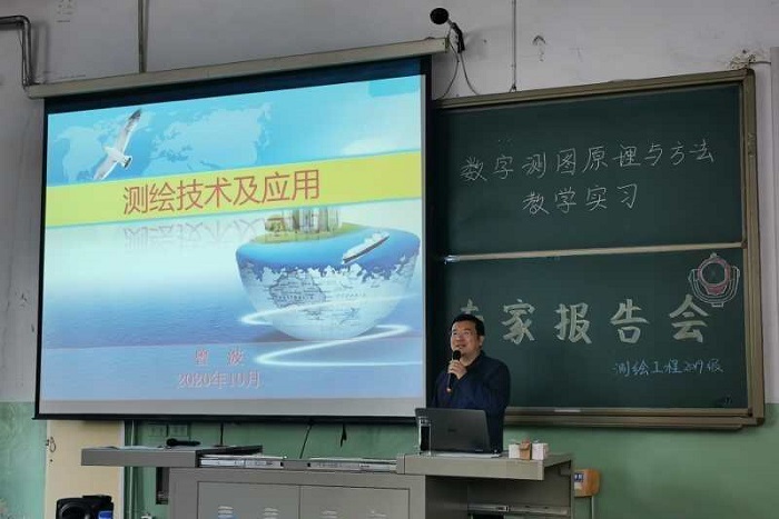 2020年10月8日,应测绘科学与技术系邀请,山西省自然资源厅生态修复处曾波处长、山西省煤炭地质物探测绘院杨文府副经理和山西省地质调查院赵惠德主任于虎峪校区梅花教室M3参加了公司测绘科学与技术系《数字测图原理与方法》教学实习专家报告会。董宪姝经理和王开副经理出席了本次报告会并致辞,实习队长李大成副教授主持了会议,测绘系负责人、实习指导老师和测绘工程专业19级全体同学参加了报告会。