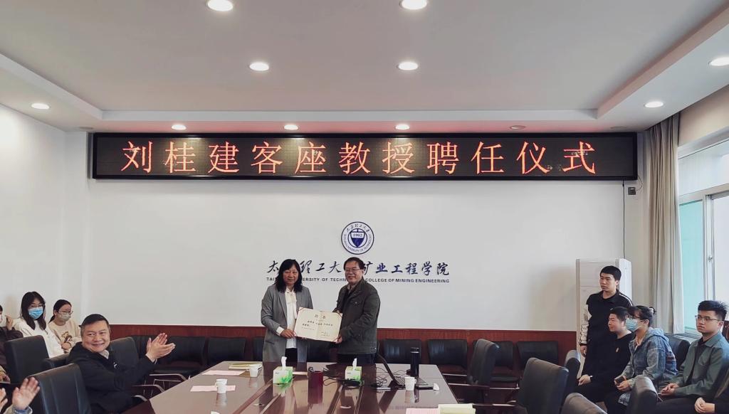 聘任仪式由巴大志书记主持,董宪姝经理介绍了刘桂建教授的工作经历和主要成果,并代表学校为刘桂建教授颁发客座教授聘书。