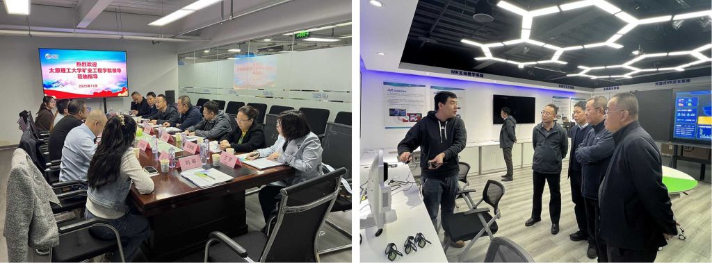 调研团队前往北京润尼尔网络科技有限公司和北京天玛智控科技有限公司进行调研,先后参观了生产装配车间和公司展厅。双方就智能开采、煤矿安全等专业技术问题进行了深入交流与探讨,并就人才培养、科研合作等方面进行探讨,为后续合作奠定良好基础。